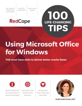 “100 Tips” is a tips & tricks guide for Microsoft Office for Windows and is designed for busy professionals who want to deliver better results in less time! Whether you are an expert or “just getting by”, this full-color guide includes the most relevant and practical tips you need to get things done quickly and professionally using the software you’re most familiar with. Plus, it introduces you to latest features that you won’t want to miss!